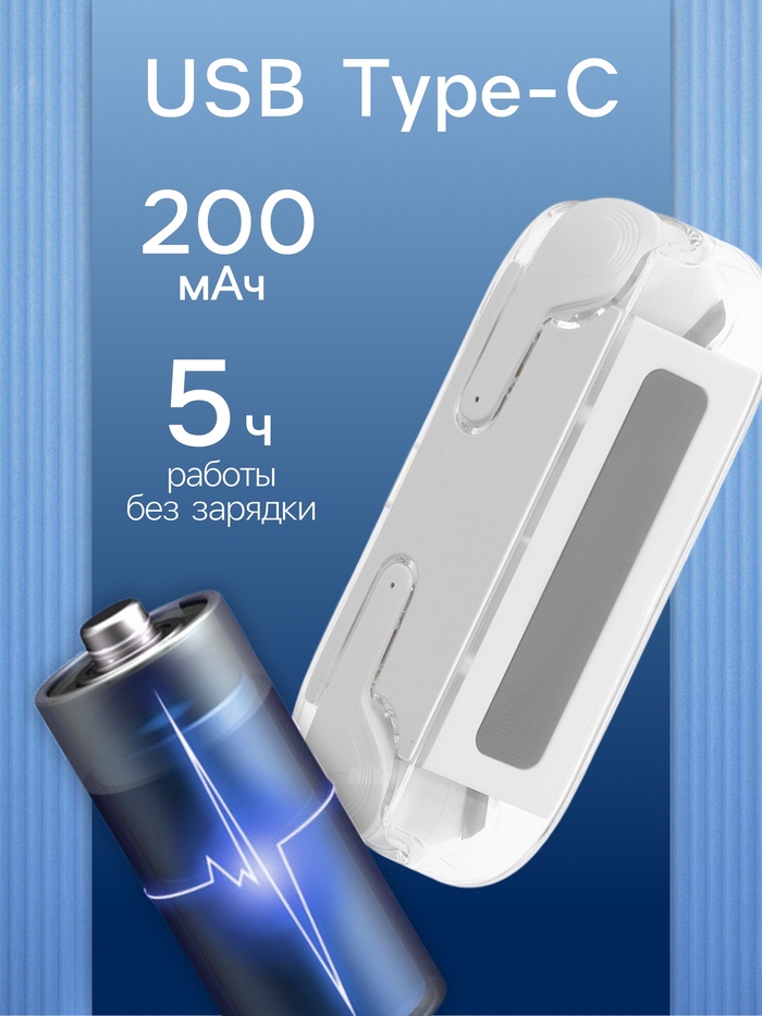 Их лаконичный белый цвет и прозрачный кейс для зарядки подчеркнут ваш стиль, а удобная конструкция обеспечит комфорт даже при длительном использовании. Благодаря ёмкости аккумулятора 200 мАч, вы сможете наслаждаться музыкой или звонками до 5 часов без необходимости частой подзарядки. А современный разъём USB Type-C сделает процесс зарядки быстрым и удобным.