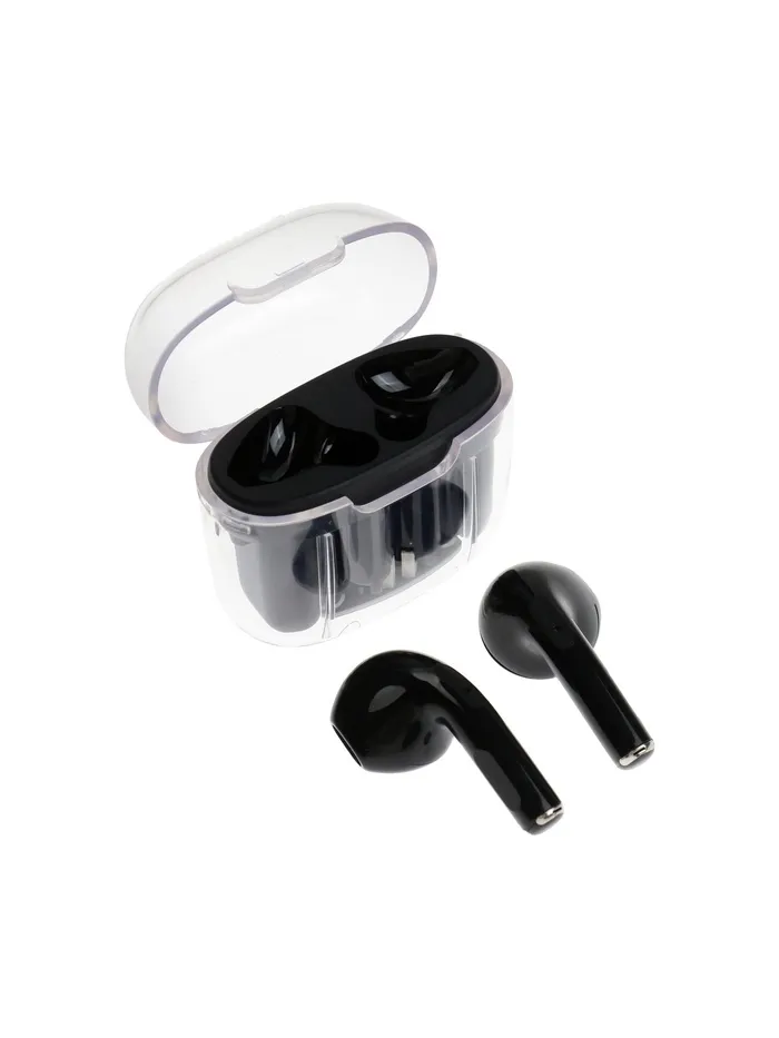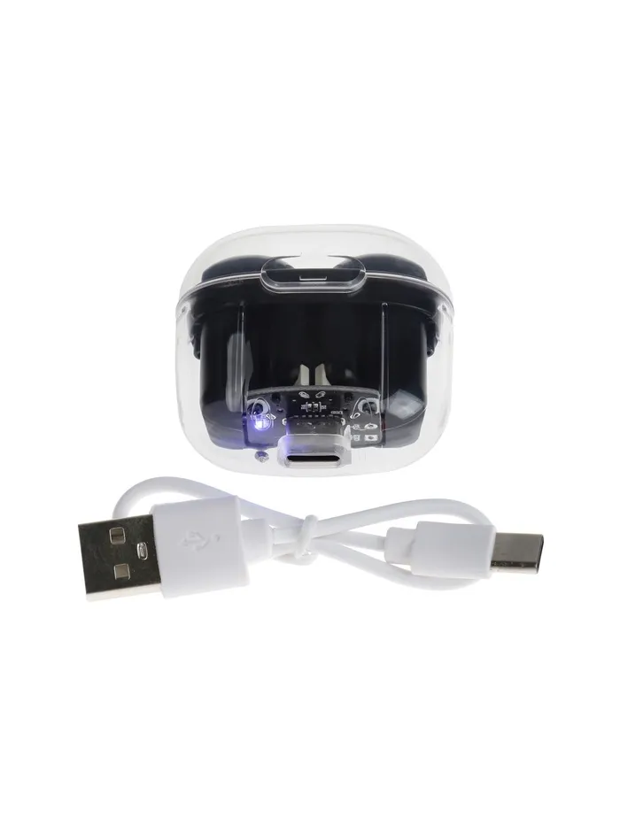 Их элегантный чёрный цвет и прозрачный кейс для зарядки подчеркнут ваш стиль, а удобная конструкция обеспечит комфорт даже при длительном использовании. Благодаря ёмкости аккумулятора 180 мАч, вы сможете наслаждаться музыкой или звонками до 5 часов без необходимости частой подзарядки. А современный разъём USB Type-C сделает процесс зарядки быстрым и удобным.