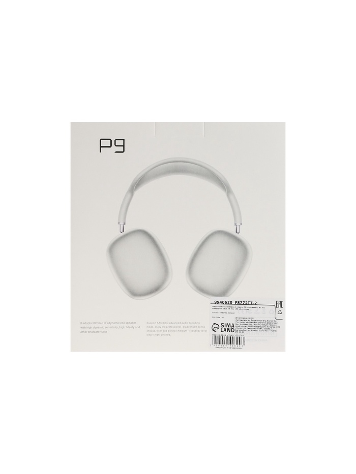 Наушники беспроводные, накладные, P9, Bluetooth 5.0, с микрофоном, Jack 3.5 мм 150 мАч, серые — Характеристики