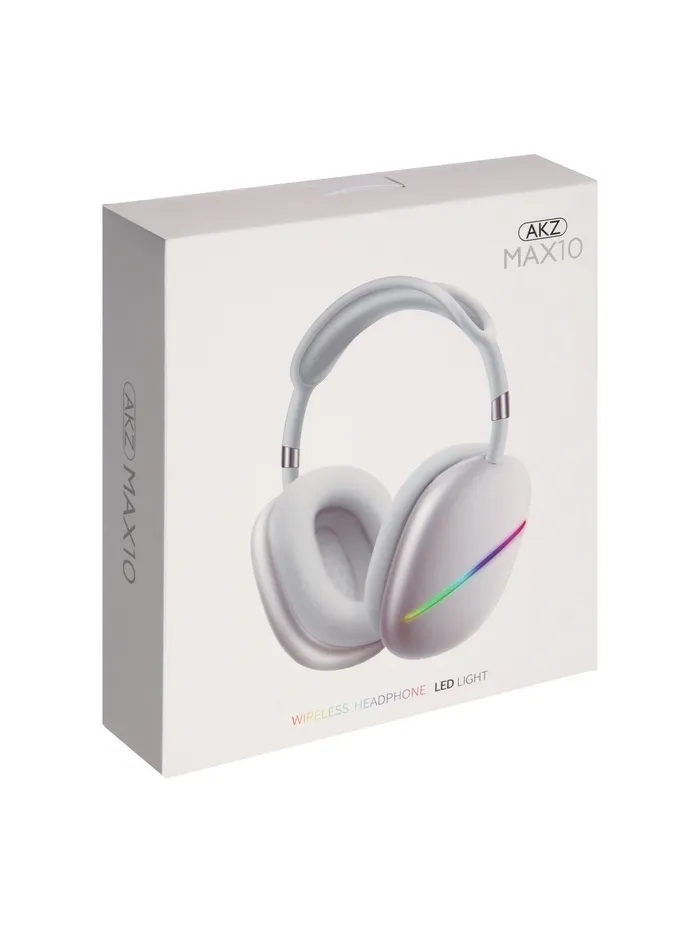 Наушники беспроводные, полноразмерные, AKZ MAX10, с шумоподавлением, с микрофоном, с подсветкой, белые — Характеристики