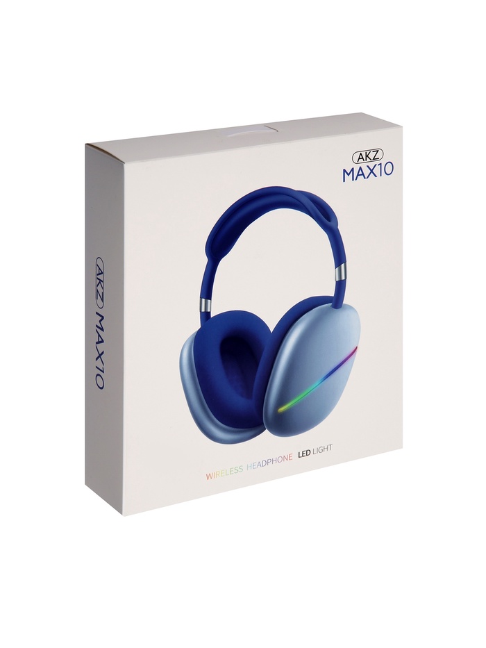 Наушники беспроводные, полноразмерные, AKZ MAX10, с шумоподавлением, с микрофоном, с подсветкой, синие — Характеристики