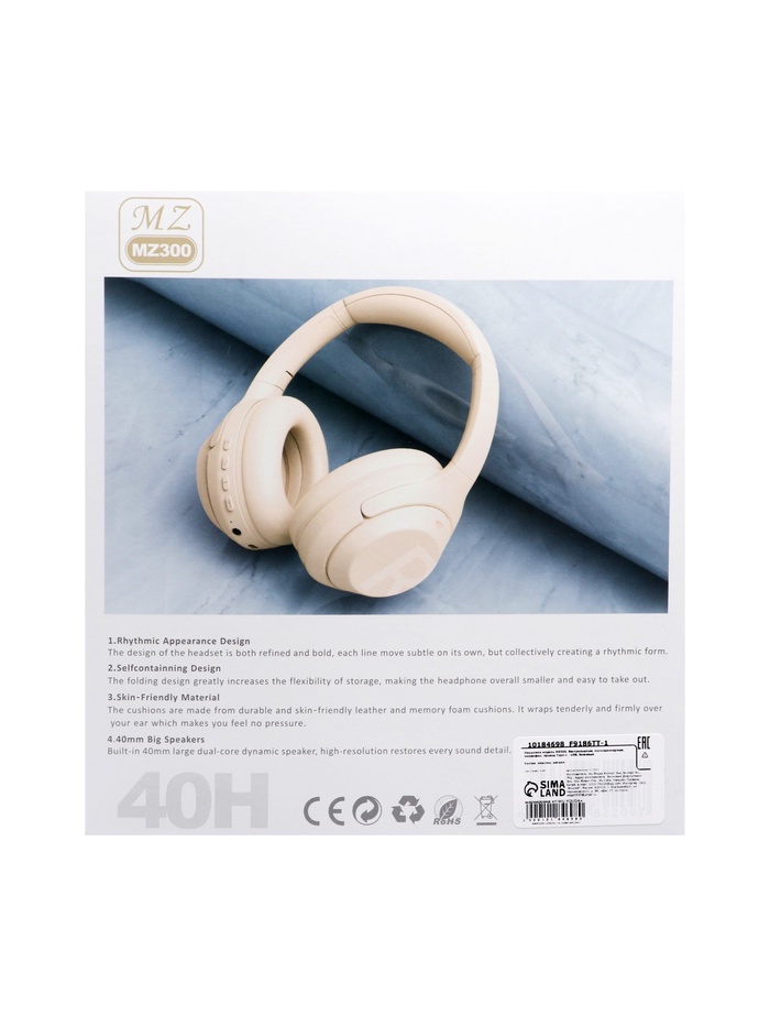 Наушники беспроводные, полноразмерные, MZ300, Bluetooth 5.3, с микрофоном, 400 мАч, бежевые — Характеристики