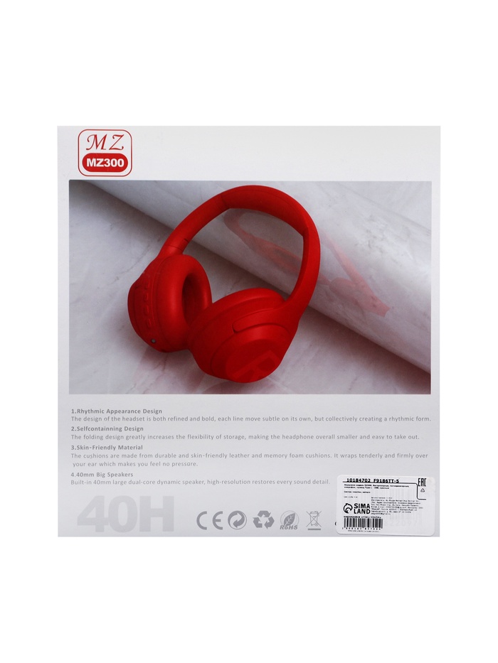 Наушники беспроводные, полноразмерные, MZ300, Bluetooth 5.3, с микрофоном, 400 мАч, красные — Характеристики