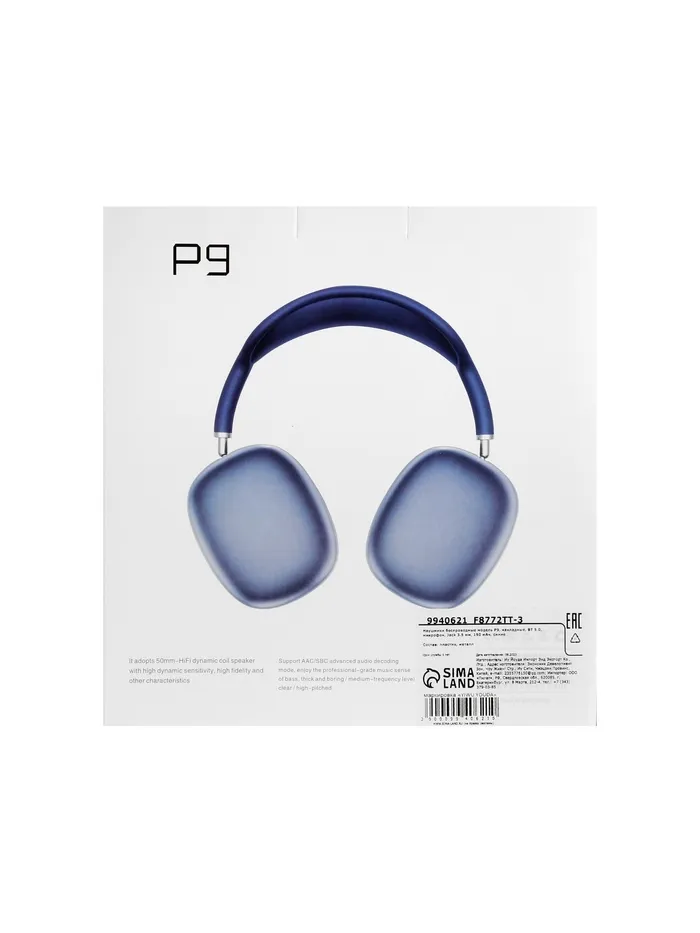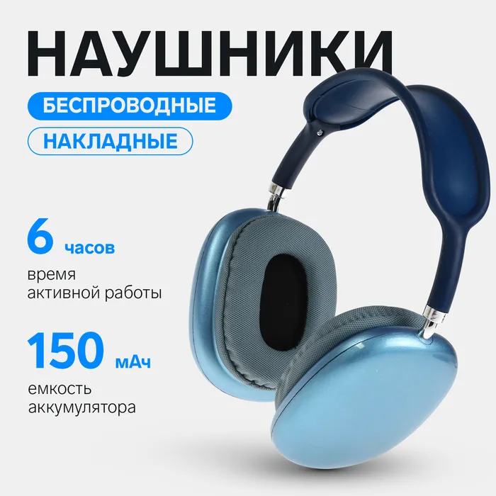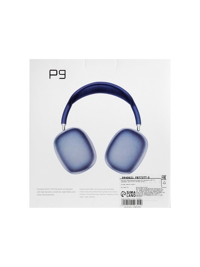 Наушники беспроводные, полноразмерные, P9, Bluetooth 5.0, с микрофоном, Jack 3.5 мм 150 мАч, синие — Характеристики