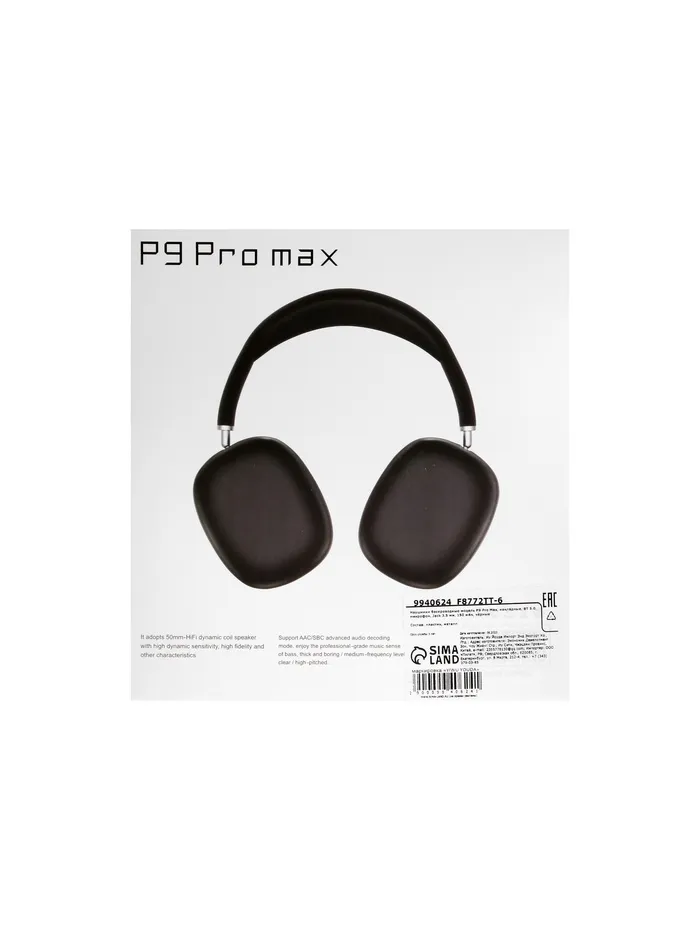 Наушники беспроводные, полноразмерные, P9 ProMax, Bluetooth 5.0, с микрофоном, Jack 3.5 мм 150 мАч, чёрные — Характеристики