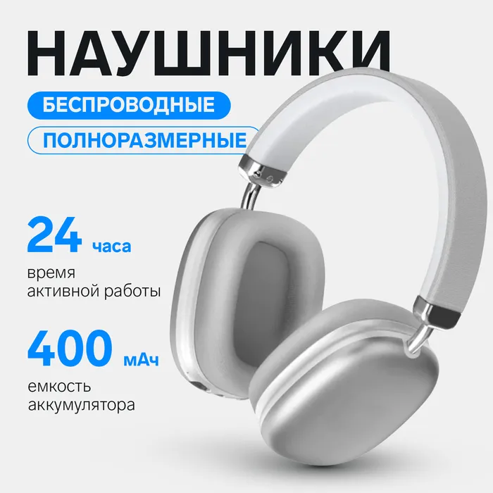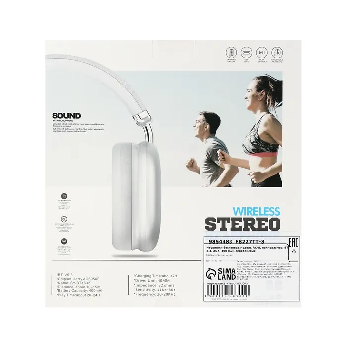 Наушники беспроводные, полноразмерные, RX-8, Bluetooth 5.3, с шумоподавлением, с микрофоном, AUX, 400 мАч, серебристые — Характеристики