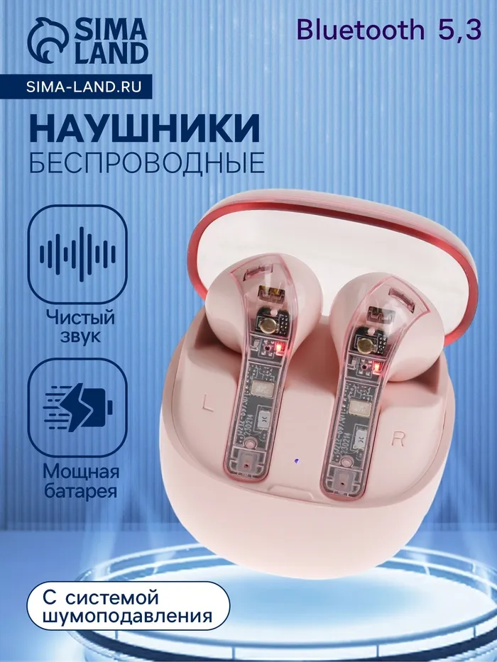 Наушники беспроводные R20, TWS, вкладыши, Bluetooth 5.3, 30/200 мАч, шумоподавление, розовые — Характеристики