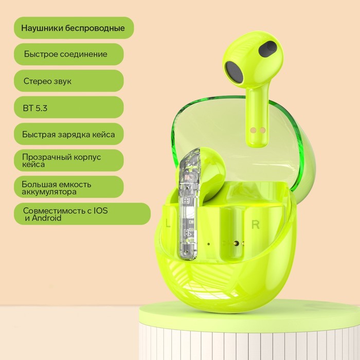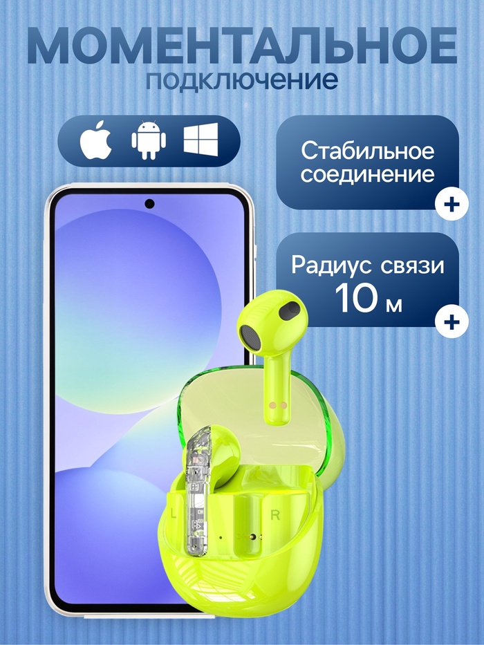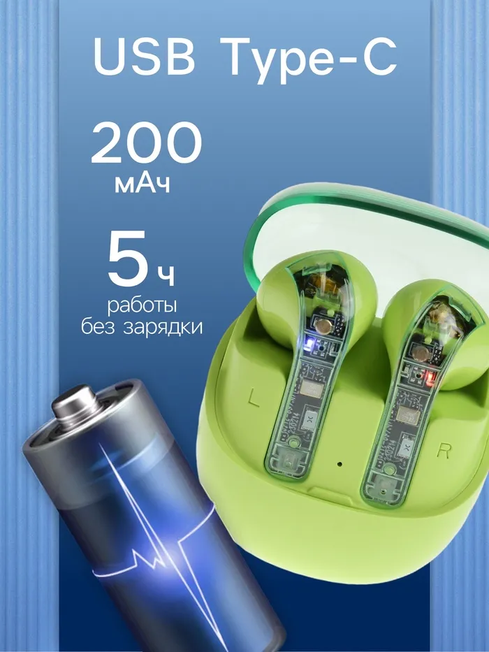 Их яркий зелёный цвет подчеркнёт ваш стиль, а удобная конструкция обеспечит комфорт даже при длительном использовании. Благодаря ёмкости аккумулятора 200 мАч, вы сможете наслаждаться музыкой или звонками до 5 часов без необходимости частой подзарядки. А современный разъём USB Type-C сделает процесс зарядки быстрым и удобным.