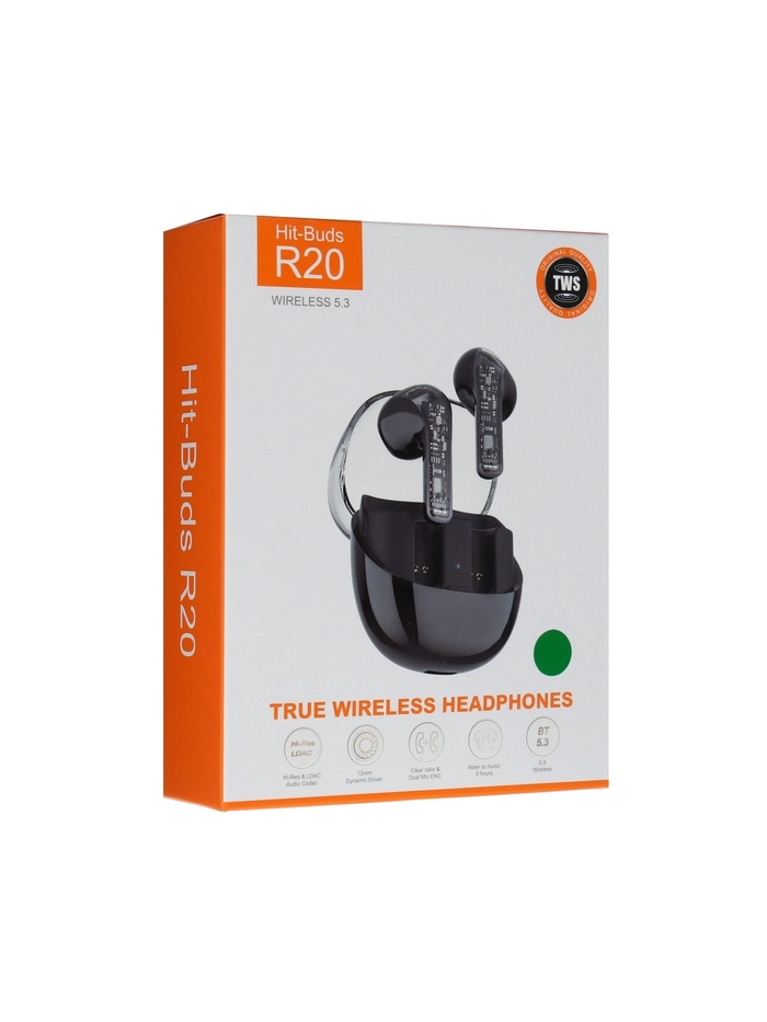 Наушники беспроводные R20, TWS, вкладыши, Bluetooth 5.3, 30/200 мАч, шумоподавление, зелёные — Характеристики
