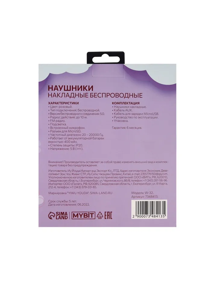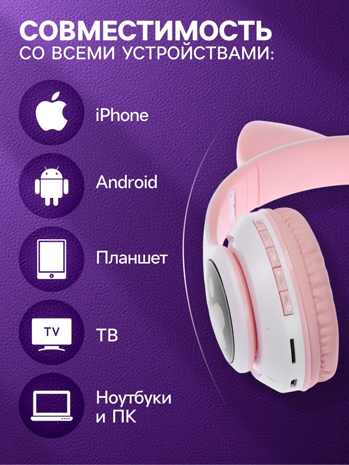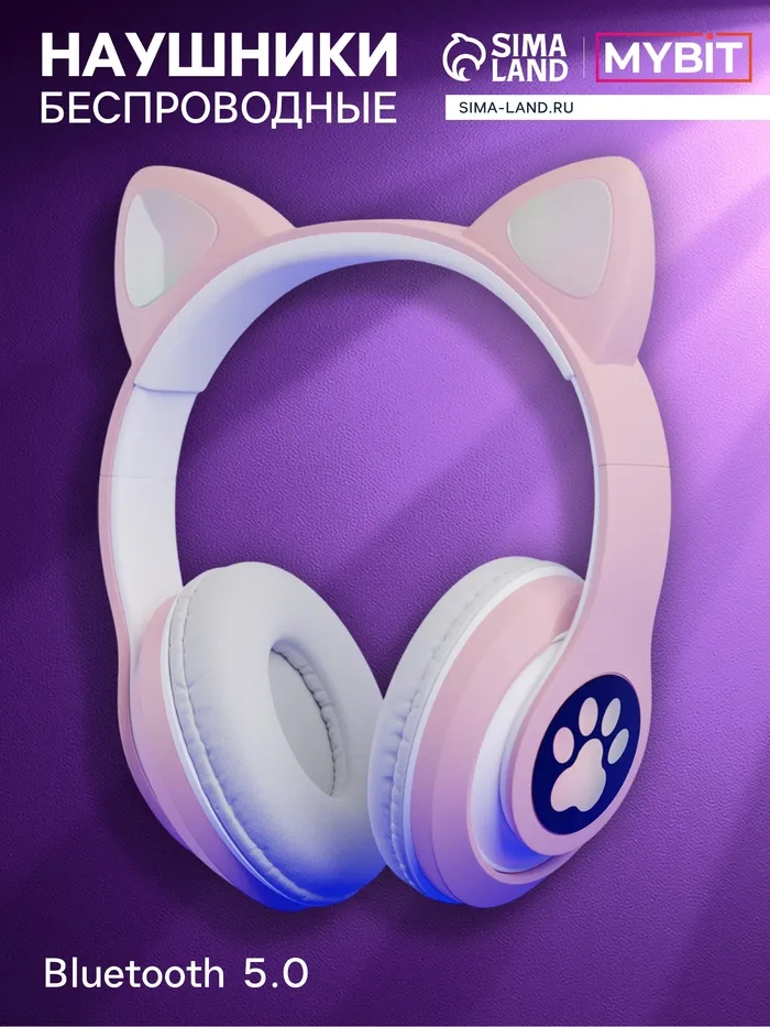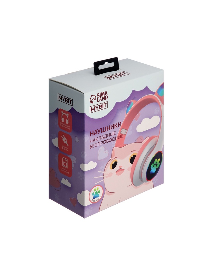 Наушники беспроводные, с ушками кошки, MYBIT W-32, Bluetooth 5.0, с микрофоном, AUX, microSD, MP3, 400 мАч, розовые — Характеристики