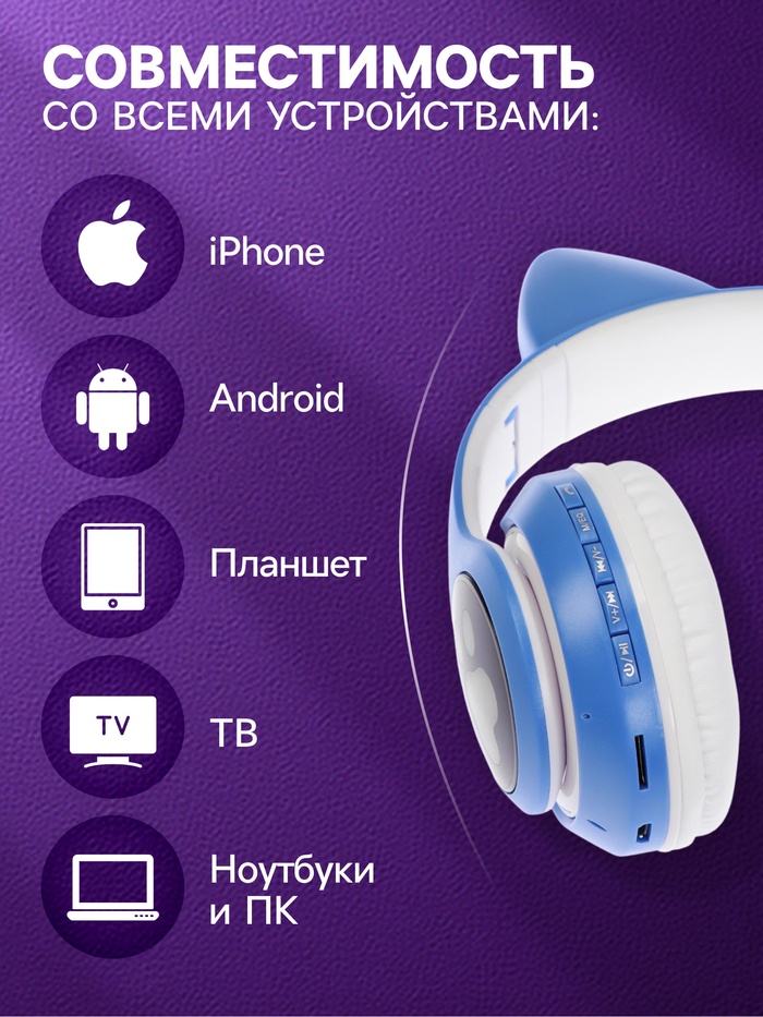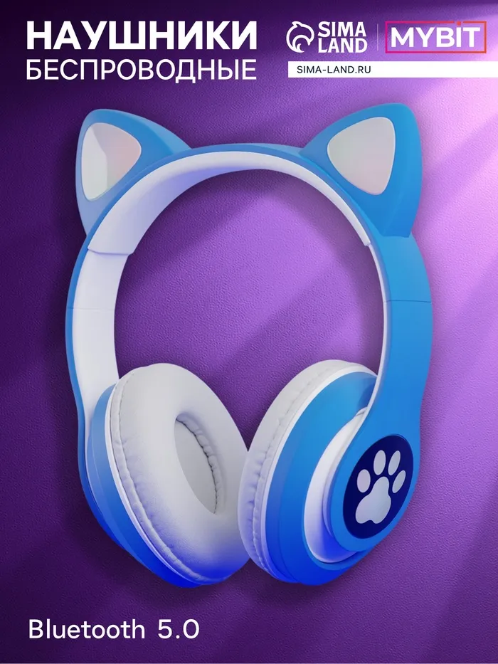 Наушники беспроводные, с ушками кошки, MYBIT W-32, Bluetooth 5.0, с микрофоном, AUX, microSD, MP3, 400 мАч, синие — Характеристики