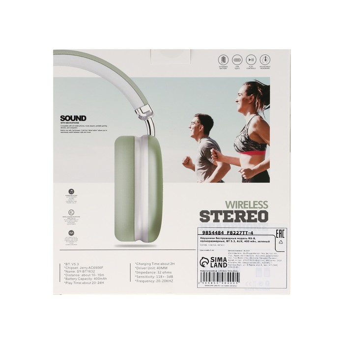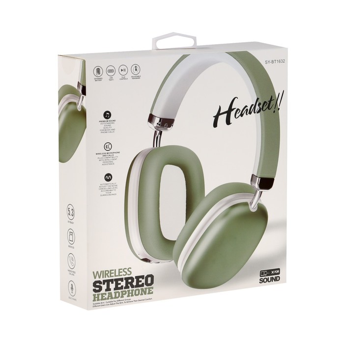 Наушники беспроводные SY-BT 1632, полноразмерные, микрофон, BT5.3, AUX, 400 мАч, зелёные — Характеристики