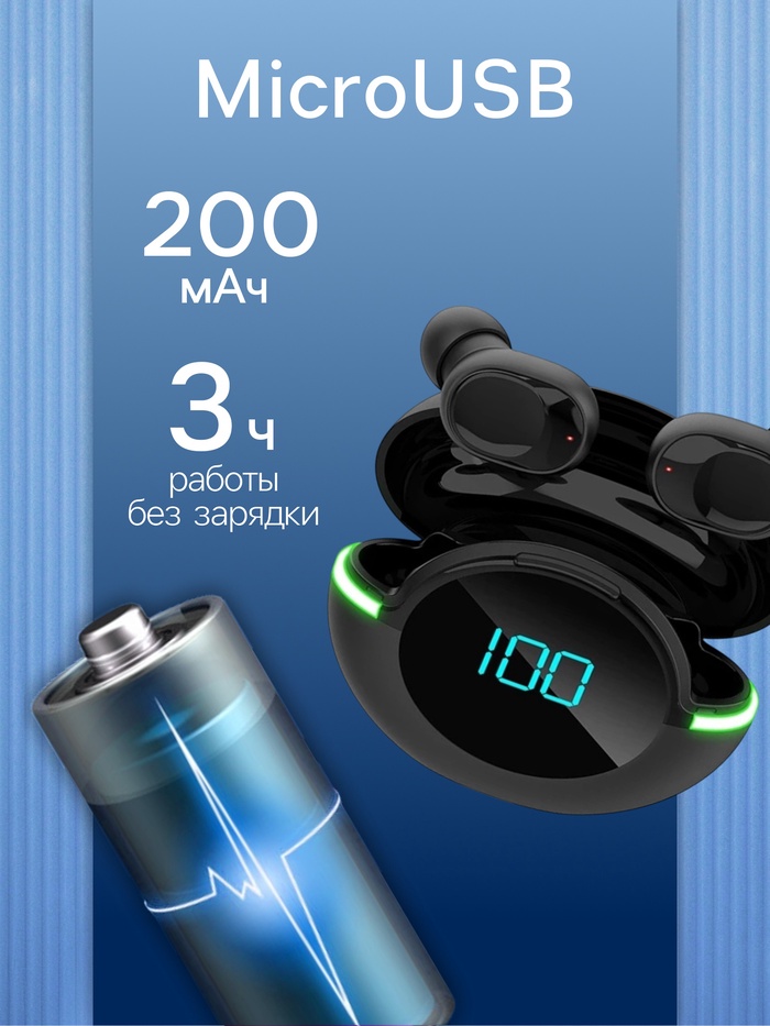 - Аккумулятор: 30 мАч (наушники) и 200 мАч (кейс) — до 3 часов автономной работы.