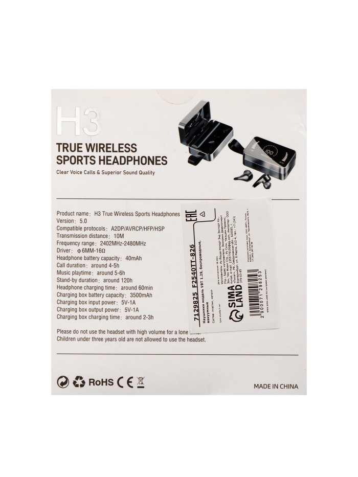Наушники беспроводные VBT 1.29, TWS, вакуумные, Bluetooth 5.0, 3500 мАч, водонепроницаемые, чёрные — Характеристики