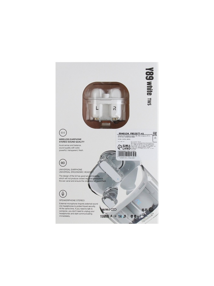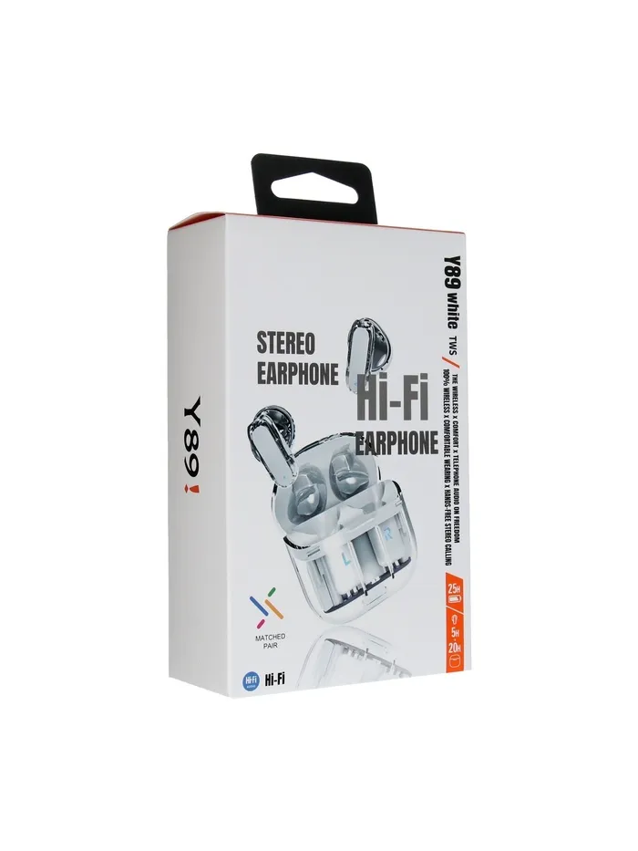 Наушники беспроводные Y89, TWS, вкладыши, Bluetooth 5.3, 30/300 мАч, белые в прозрачном кейсе — Характеристики