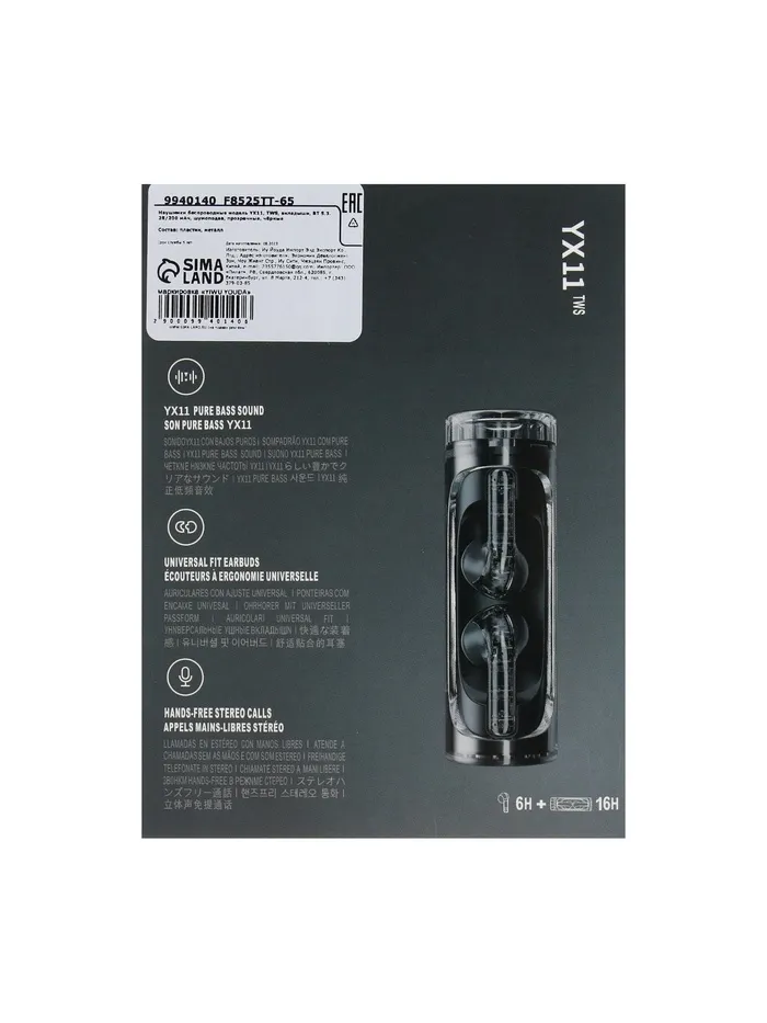 Наушники беспроводные YX11, TWS, вкладыши, Bluetooth 5.3. 28/200 мАч, шумоподавление, чёрные в прозрачном кейсе — Характеристики