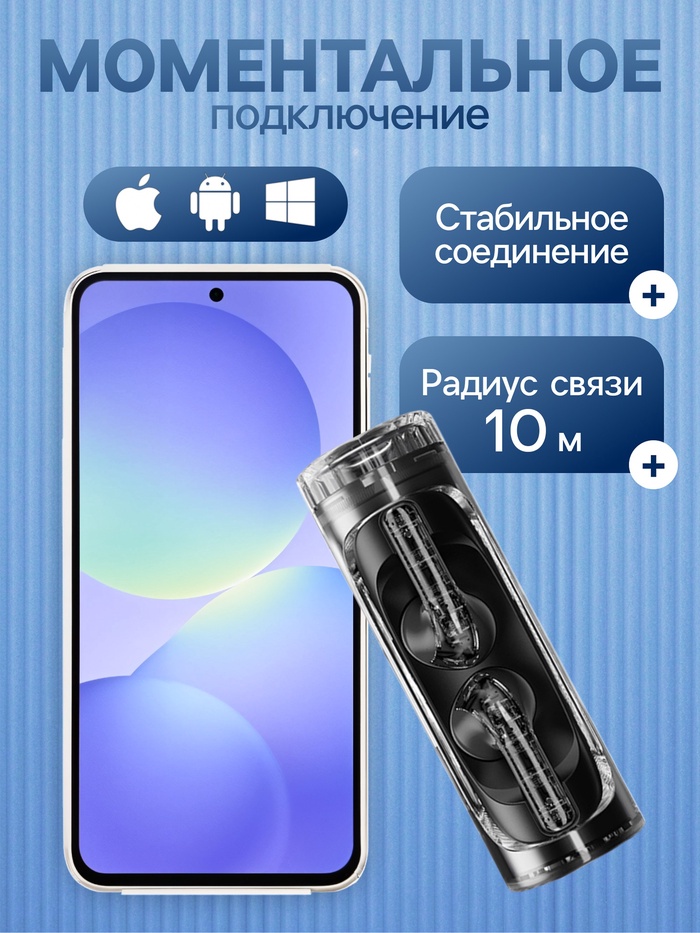 - Компактность и стиль: лёгкие и удобные наушники легко помещаются в карман, а прозрачный кейс добавляет им современный вид.