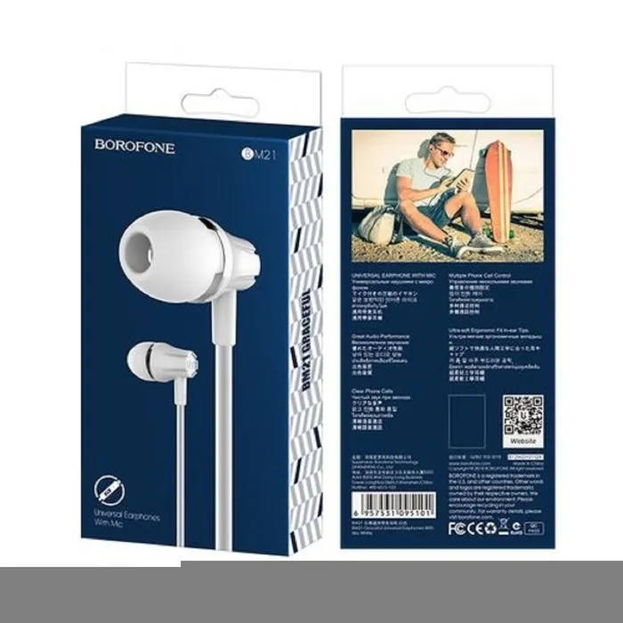 Наушники Borofone M21 Graceful, вакуумные, микрофон, Jack 3.5 мм, кабель 1.2 м, белые — Характеристики