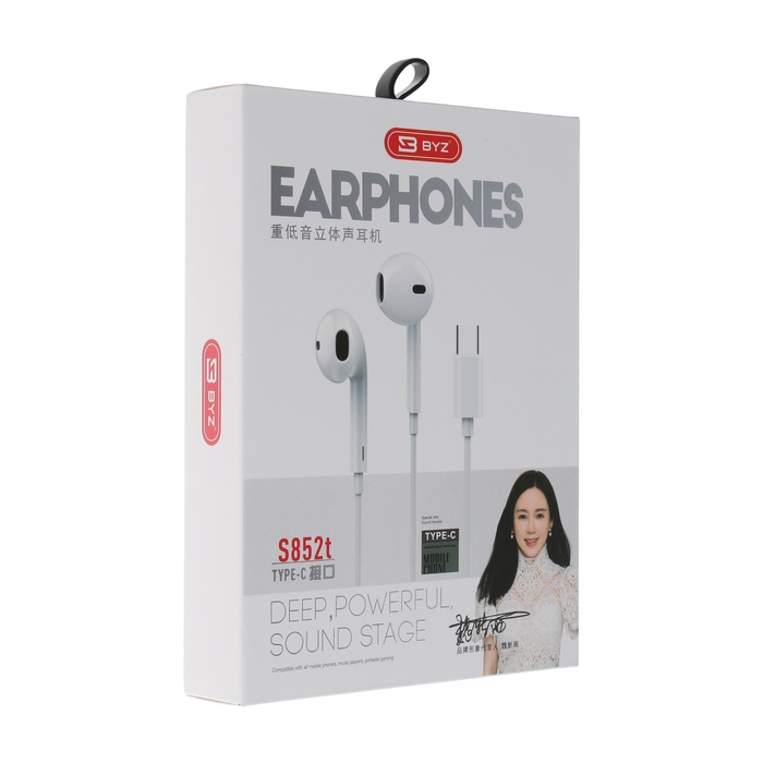 Наушники BYZ S852, проводные, вкладыши, Type-C, 1.25 м, белые — Характеристики
