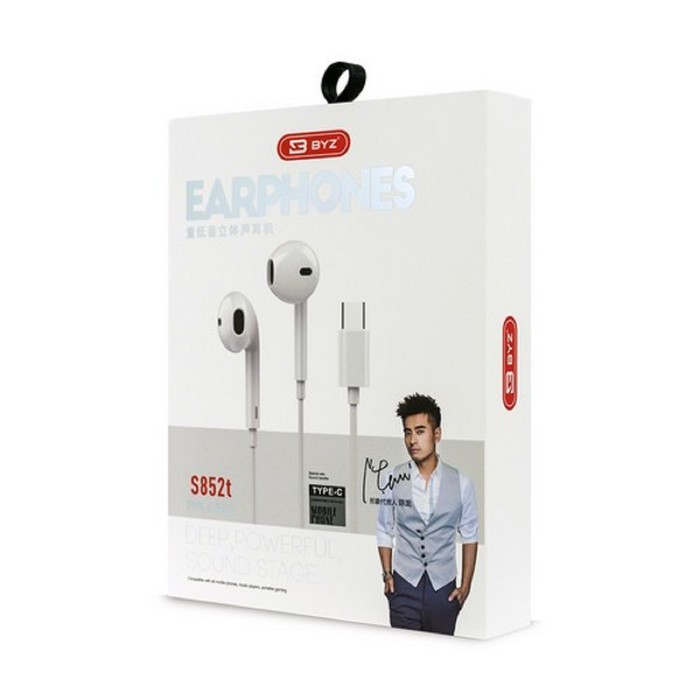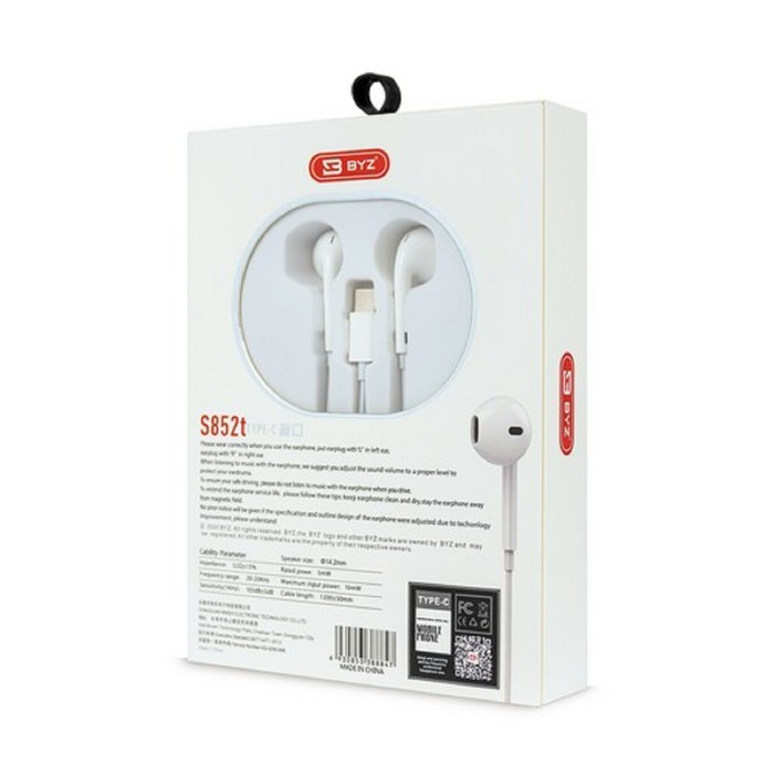 Наушники BYZ S852t, проводные, вкладыши, микрофон, Type-C, 1.25 м, белые — Характеристики