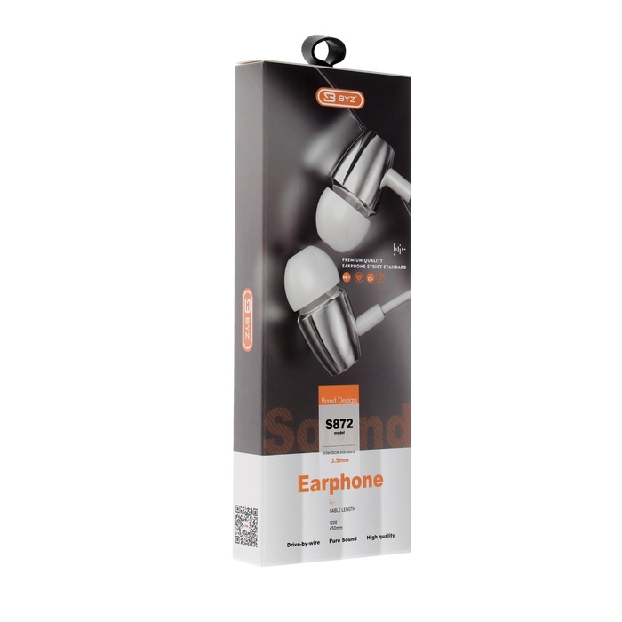 Наушники BYZ S872, проводные, вакуумные, 3.5 мм, 1.2 м, белые — Характеристики