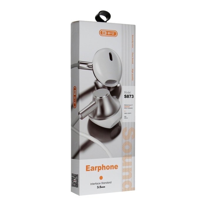 Наушники BYZ S873, проводные, вкладыши, 3.5 мм, 1.2 м, белые — Характеристики