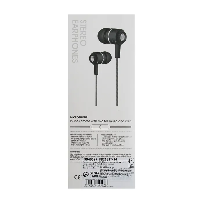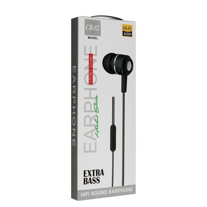 Наушники CB-52, проводные, вакуумные, микрофон, 1 м, Jack 3.5 мм, черные — Характеристики