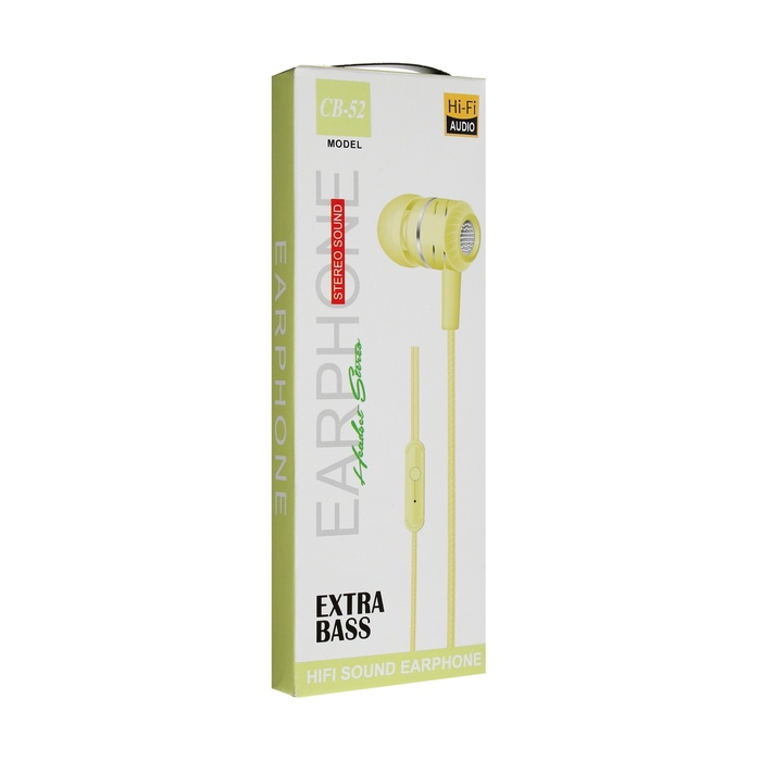 Наушники CB-52, проводные, вакуумные, микрофон, 1 м, Jack 3.5 мм, жёлтые — Характеристики