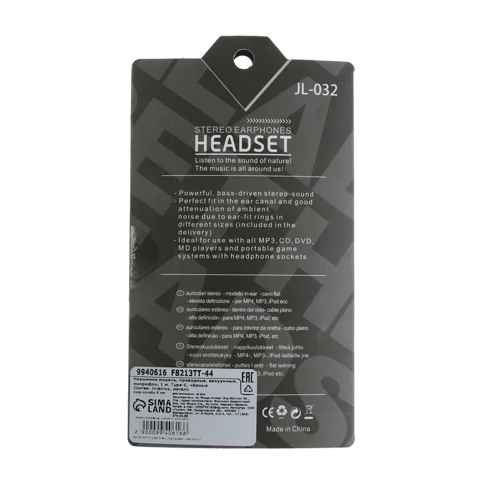 Наушники CB-53, проводные, вакуумные, микрофон, 1 м, Type-C, чёрные — Характеристики