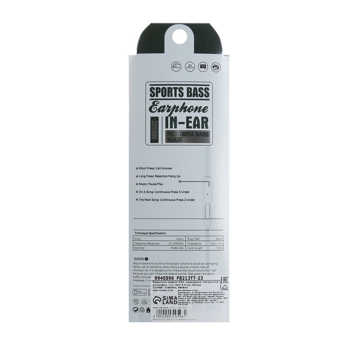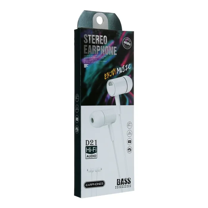 Наушники D21, проводные, вакуумные, микрофон, 1 м, Jack 3.5 мм, белые — Характеристики
