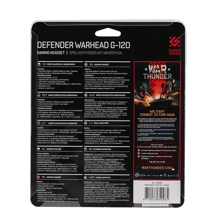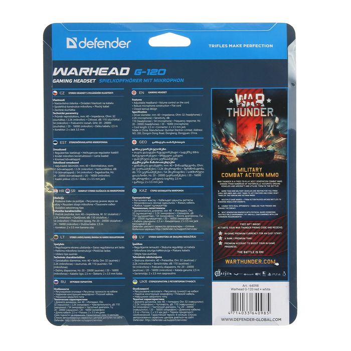 Игровая гарнитура Defender Warhead G-120 удобна для прохождения квестов, участия в долгих онлайн-баталиях и командных схватках. Устройство спроектировано для геймеров и рассчитано на длительное использование, чтобы игрок не отвлекался от процесса и не сворачивал окна для регулировки громкости. Полноразмерная конструкция с лёгким оголовьем обеспечивает комфорт в многочасовых поединках, а благодаря закрытому акустическому оформлению гарнитура не пропускает внешние шумы. Широкие чаши накрывают уши целиком и создают эффект полного погружения в события игры.