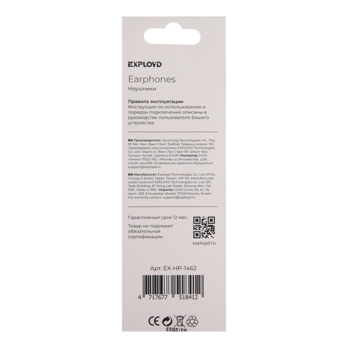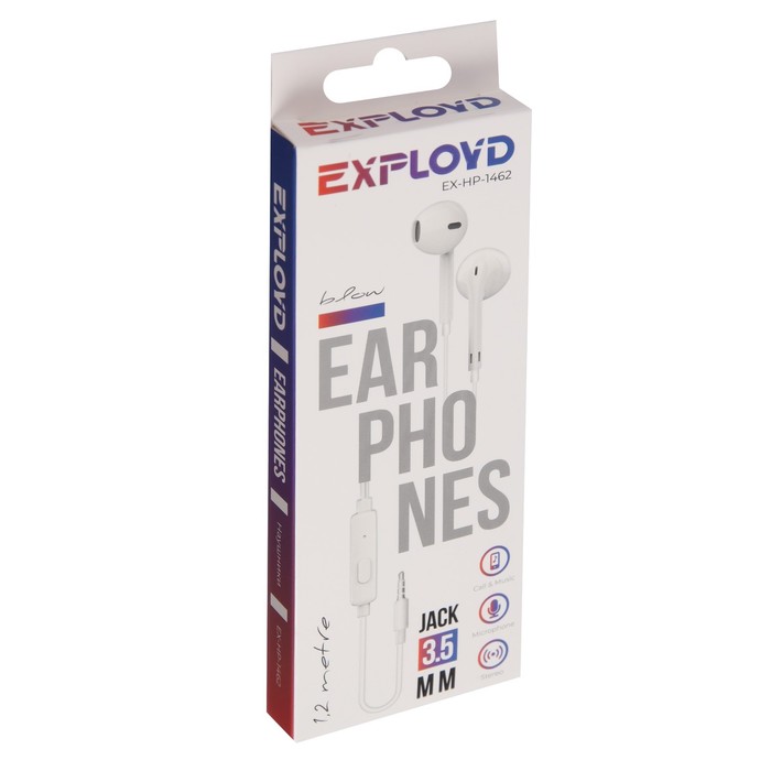Наушники Exployd EX-HP-1462, вкладыши, микрофон, проводные, 1.2 м, Jack 3.5 мм, 108 дБ, белые — Характеристики