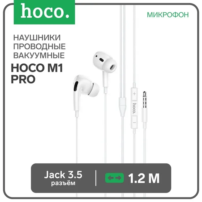 Наушники Hoco M1 Pro, проводные, вакуумные, микрофон, Jack 3.5, 1.2 м, белые — Характеристики