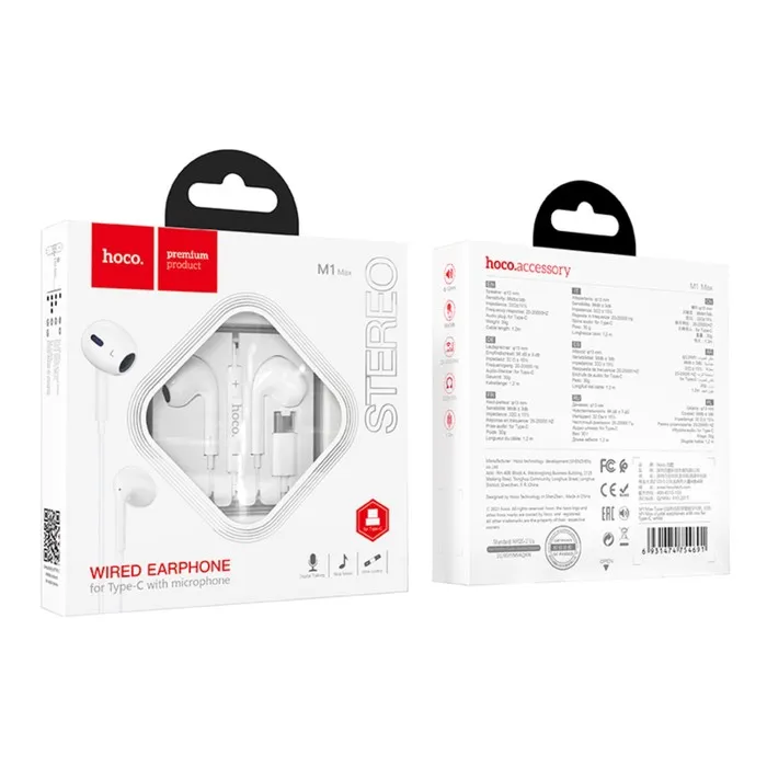 Наушники Hoco M1, проводные, вкладыши, Type-C, 1.2 м, белые — Характеристики