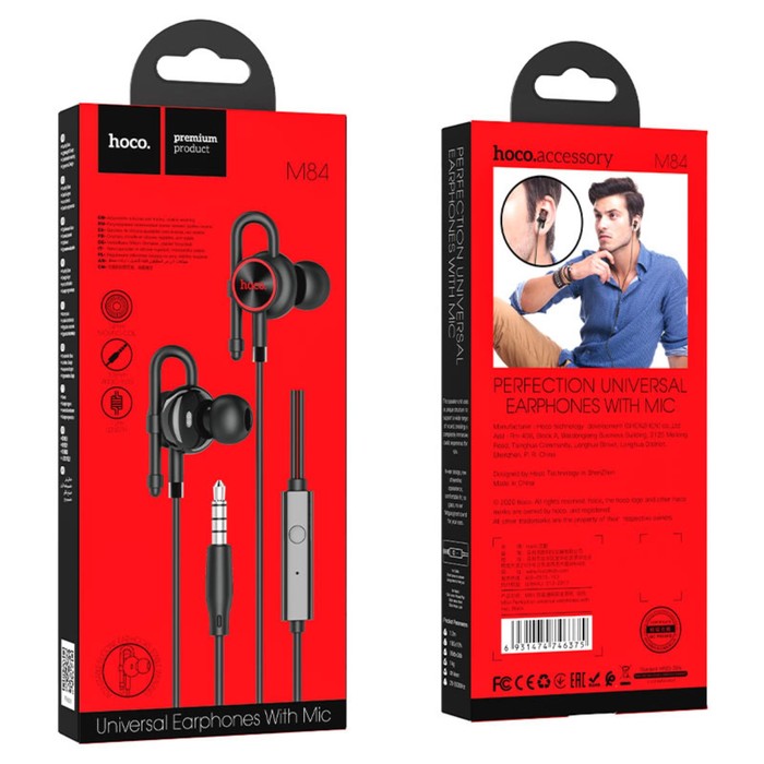 Наушники Hoco M84, проводные, вакуумные, микрофон, 1.2 м, чёрные — Характеристики
