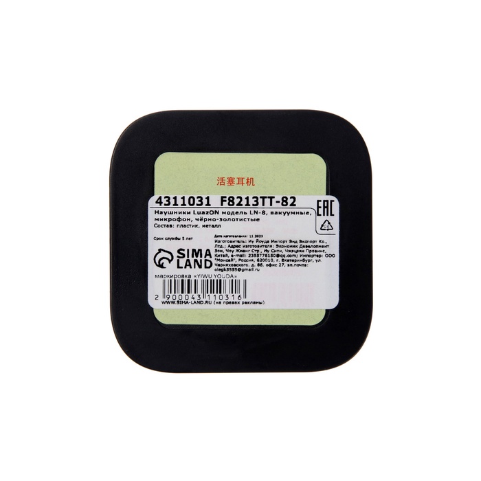 Наушники Luazon LN-8, вакуумные, микрофон, чёрно-золотистые — Характеристики