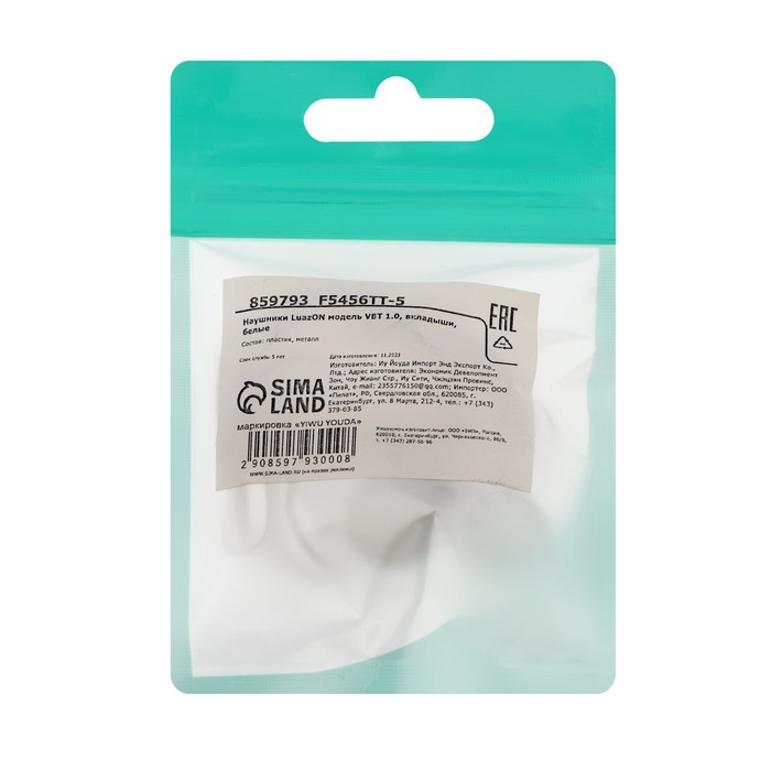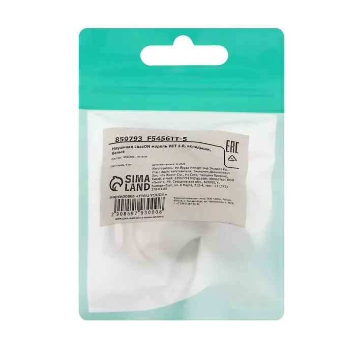 Наушники Luazon VBT 1.0, вкладыши, белые — Характеристики