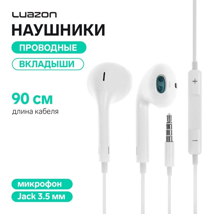 Наушники Luazon W-30, вкладыши, микрофон, белые — Характеристики