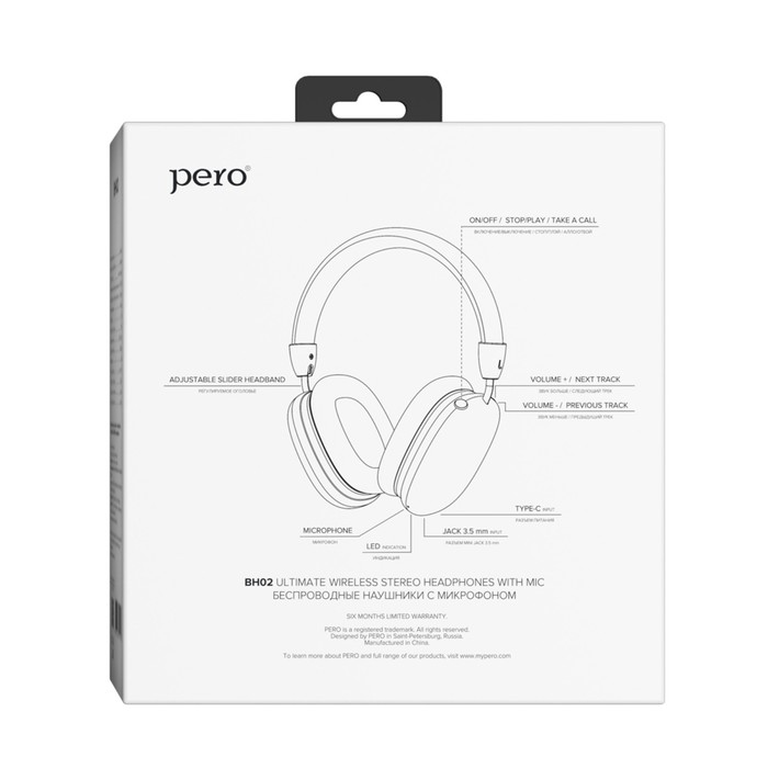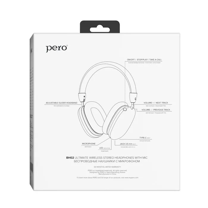 Полноразмерные складные bluetooth наушники PERO BH02 оснащены регулировкой высоты оголовья, а так же поворотными чашами с мягкими амбушюрами. Эргономичная форма и высокое качество стереозвучания. Наушники имеют встроенный HD микрофоном с возможностью приема входящих звонков. Наушники можно использовать как беспроводные, так и проводные (съемный аудиокабель в комплекте).
