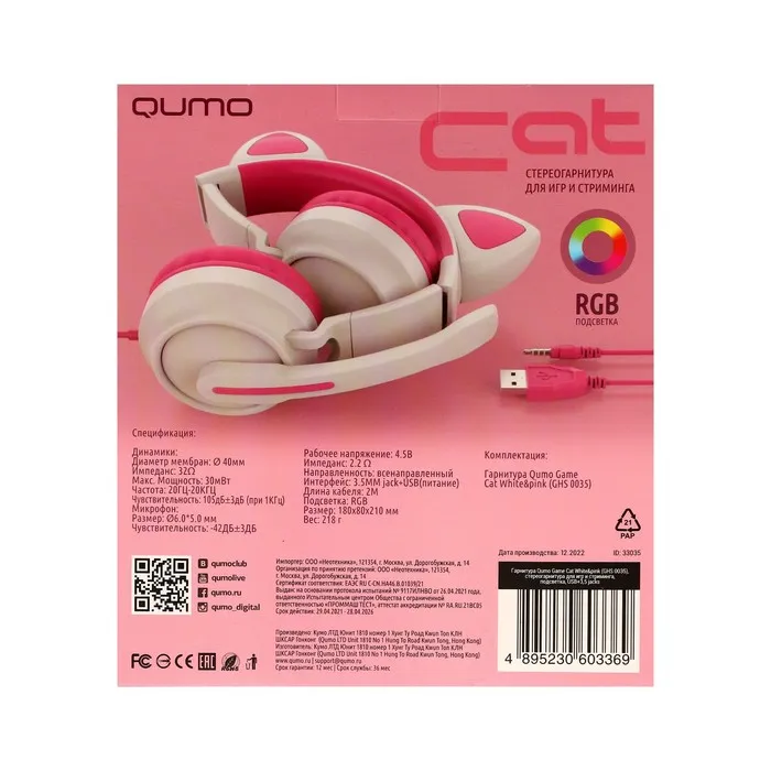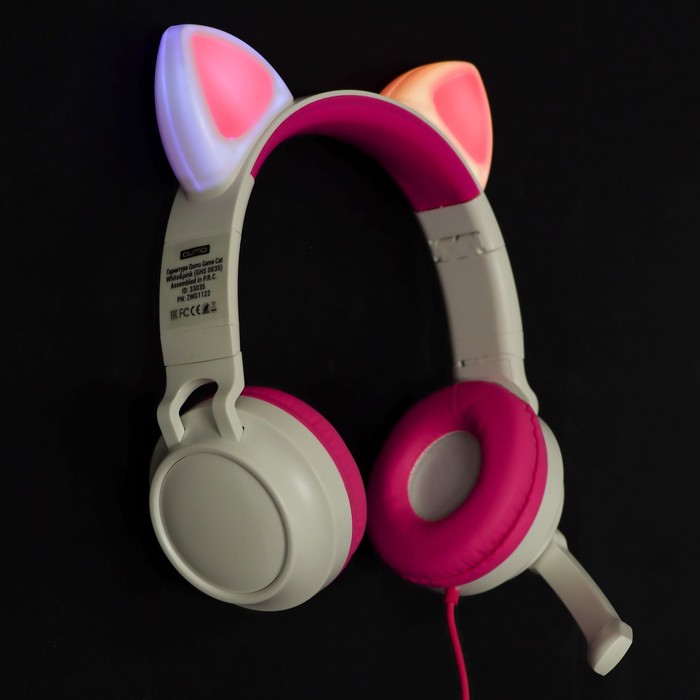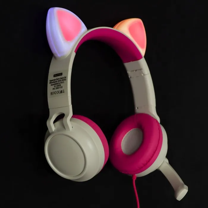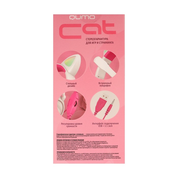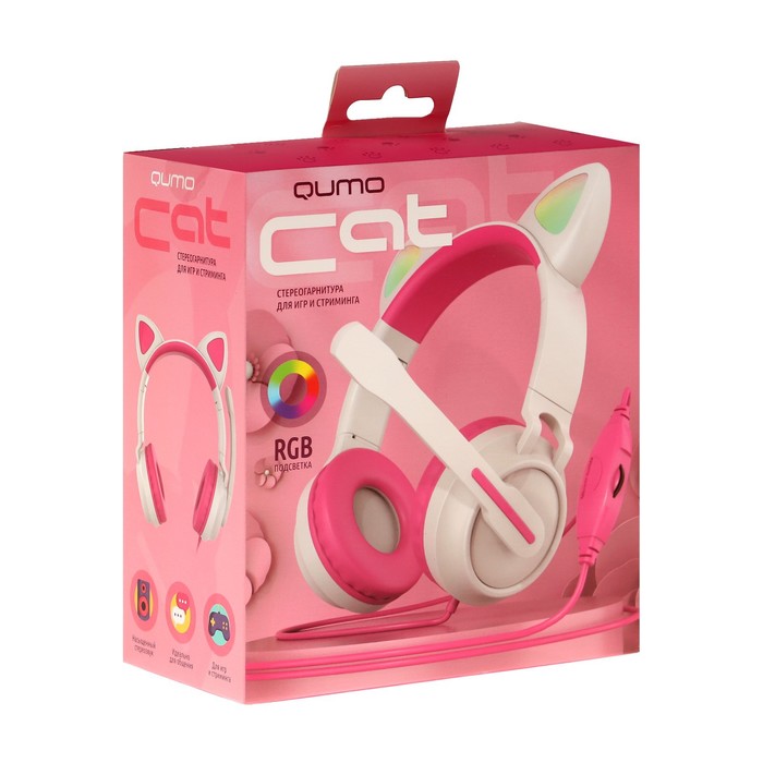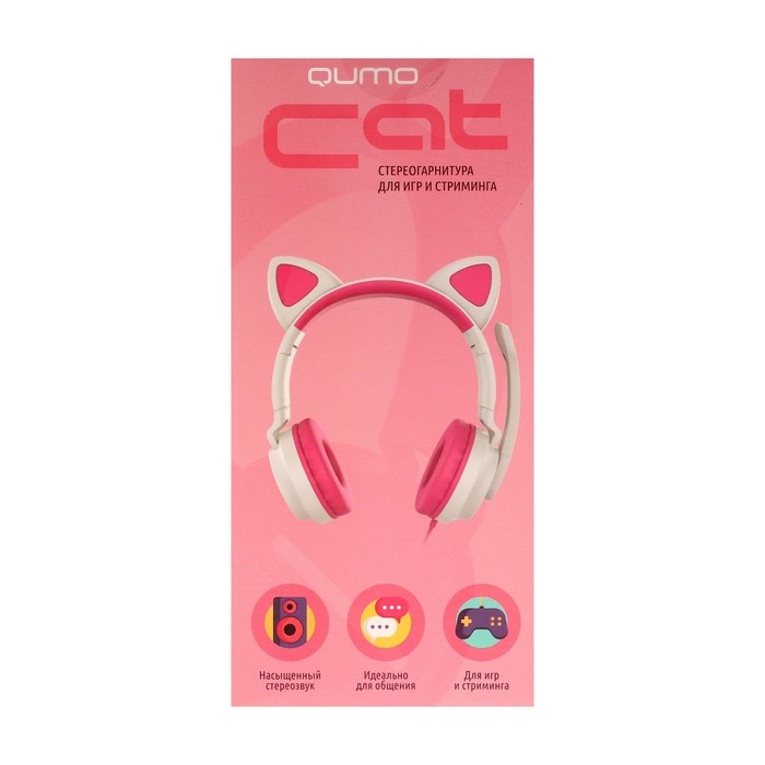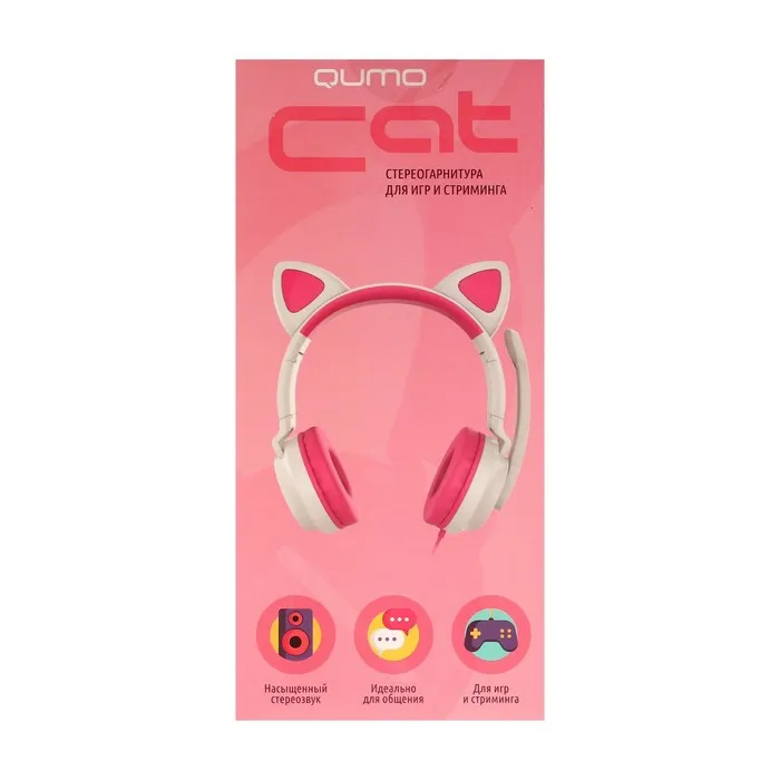 Наушники Qumo Game Cat White, игровые, микрофон, USB+3.5 мм, 2м, бело/розовые — Характеристики