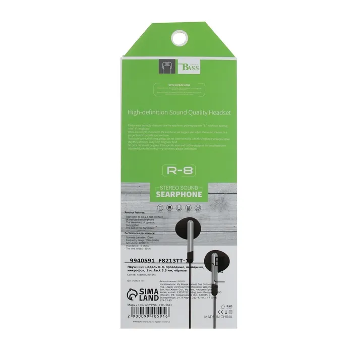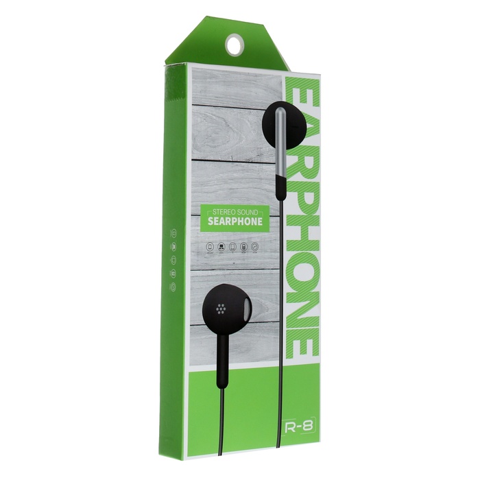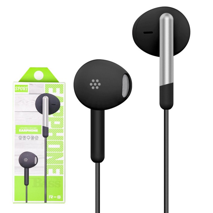 Наушники R-8, проводные, вкладыши, микрофон, 1 м, Jack 3.5 мм, чёрные — Характеристики