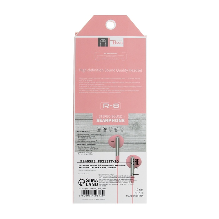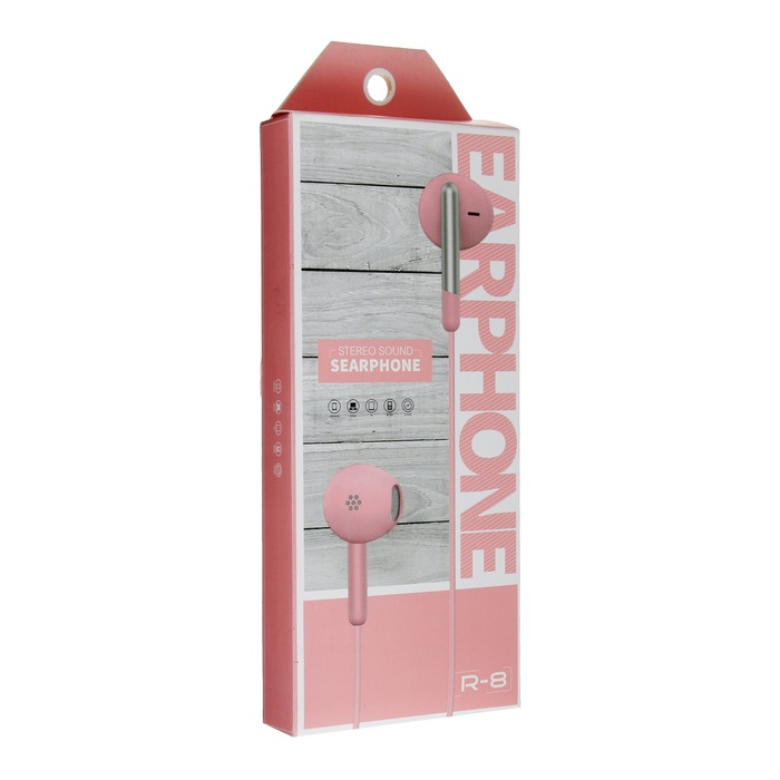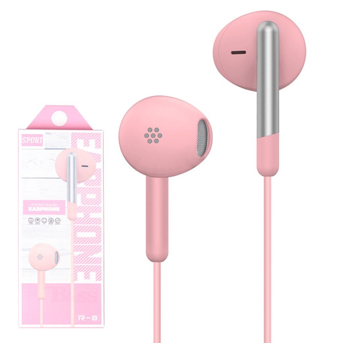 Наушники R-8, проводные, вкладыши, микрофон, 1 м, Jack 3.5 мм, розовые — Характеристики