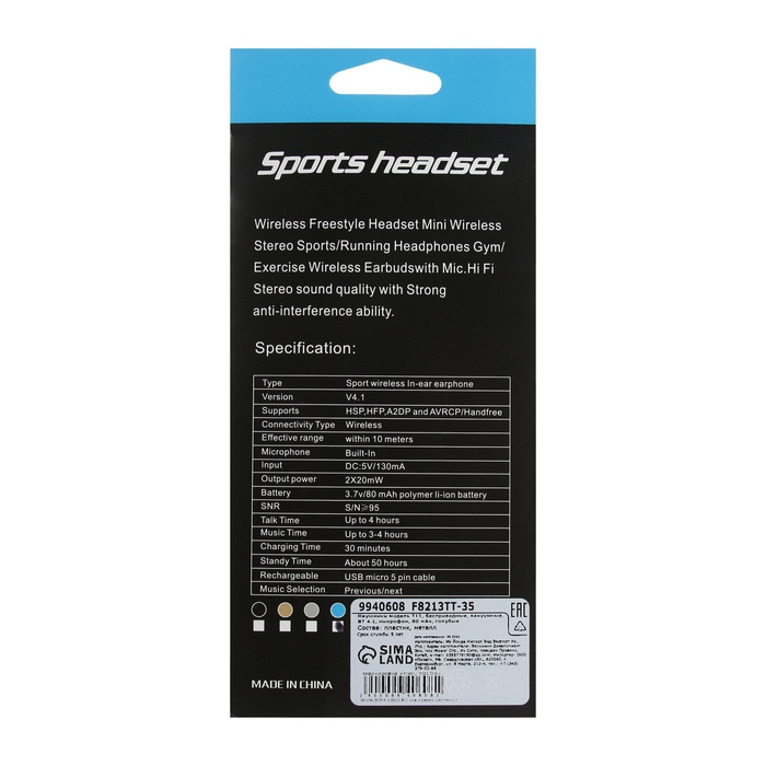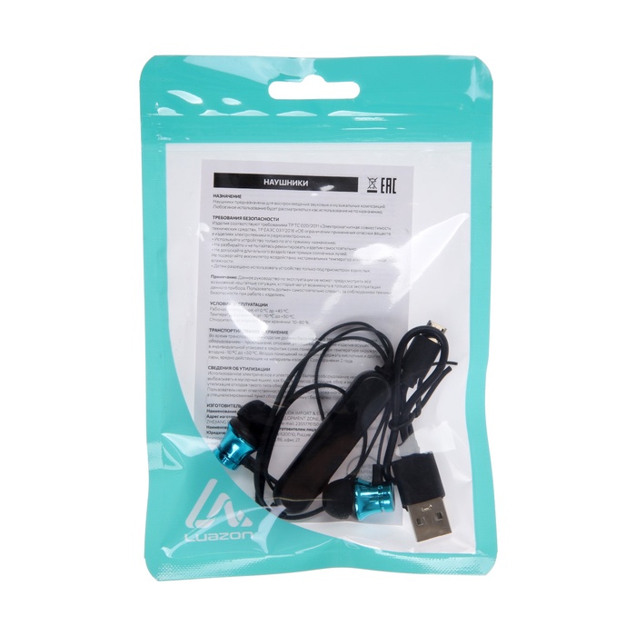 Наушники спортивные беспроводные, Luazon T11, вакуумные, Bluetooth 4.1, с микрофоном, 80 мАч, голубые — Характеристики