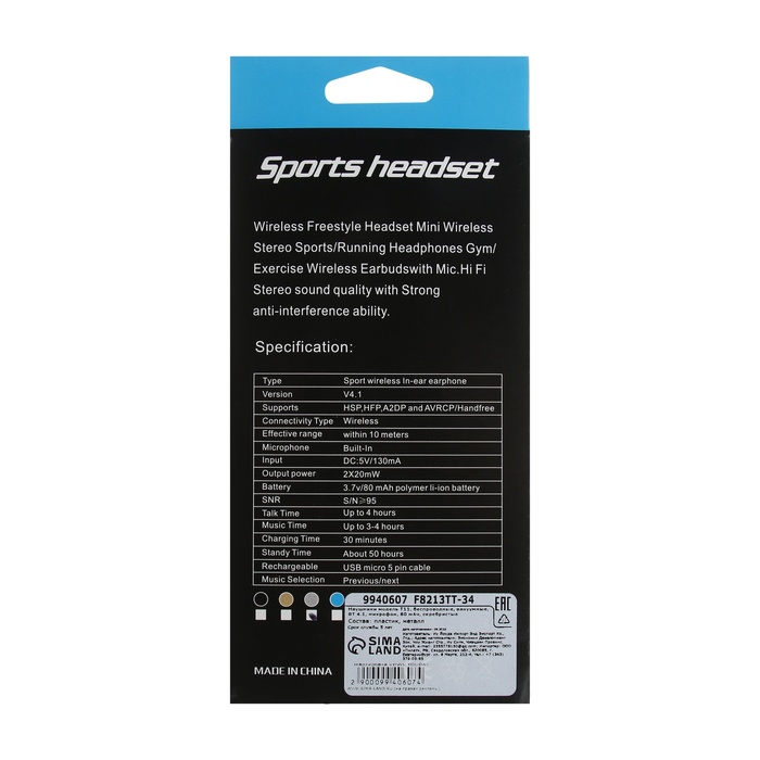 Наушники спортивные беспроводные, Luazon T11, вакуумные, Bluetooth 4.1, с микрофоном, 80 мАч, серебристые — Характеристики