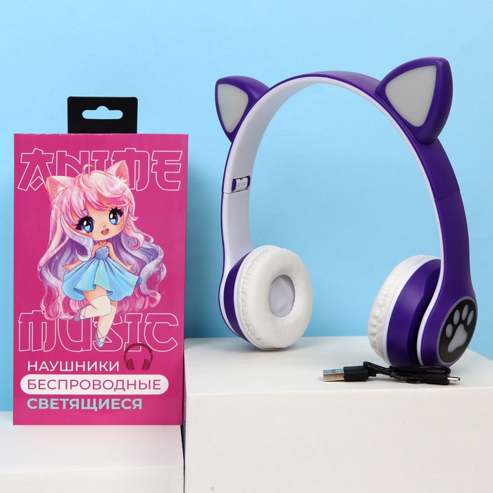 Наушники светящиеся ушки, беспроводные «Аниме»,сиреневые W-02 — Характеристики