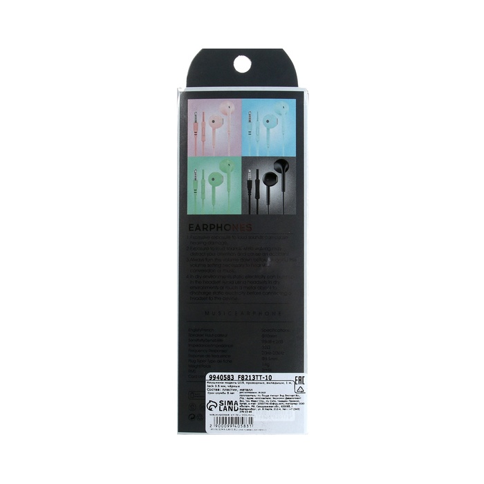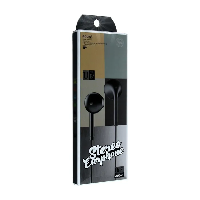 Наушники U19, проводные, вкладыши, 1 м, Jack 3.5 мм, чёрные — Характеристики