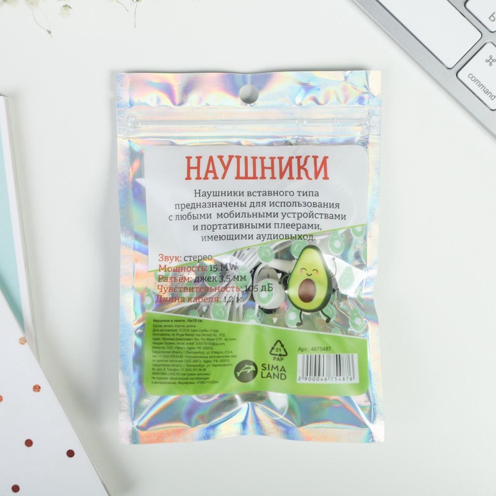 Наушники вакуумные, в пакете, «Авокадо», 10 х 15 см — Характеристики