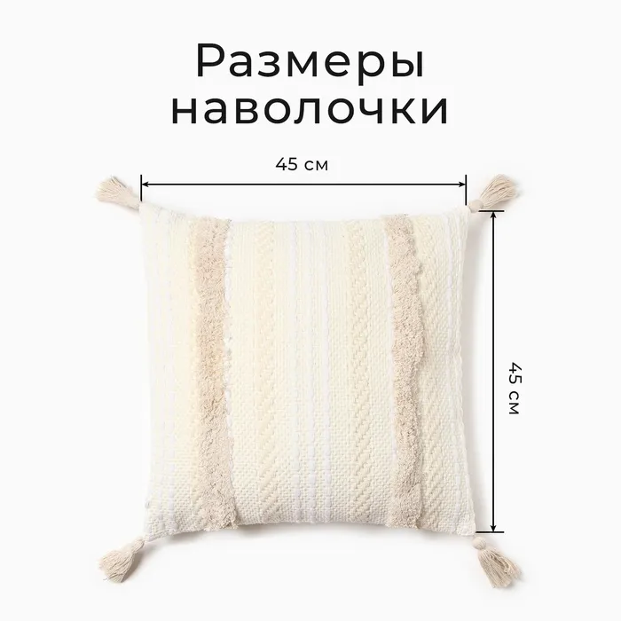 Наволочка декоративная Этель бохо Line 45х45 см, цвет бежевый, хлопок — Характеристики