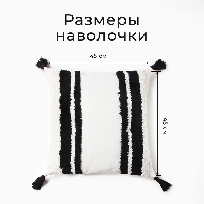 Декоративная наволочка в стиле бохо «Line» — лёгкий намёк на свободу и индивидуальность. Натуральный хлопок с рубчиковой текстурой создаёт ощущение уюта и небрежной элегантности, а графичный узор в бежево-чёрной гамме добавляет интерьеру ритма без агрессии. Кисточки по углам подчёркивают рукотворный характер вещи, делая её живой деталью дома. Размер 45×45 см идеально вписывается в любую композицию подушек — на диване, кровати или в кресле.