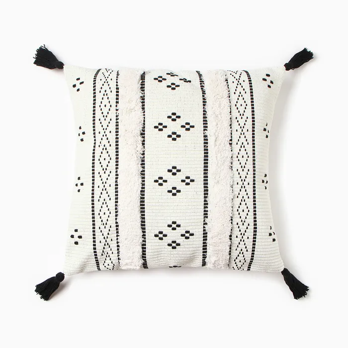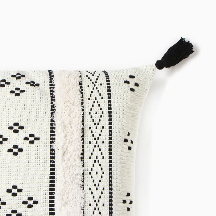 Стиль начинается с детали: Эта наволочка — не просто текстиль, а выражение настроения. Бежево-чёрный орнамент, хлопковая фактура и кисточки работают вместе, чтобы передать атмосферу спокойствия, порядка и домашней гармонии. Используйте её как центральный элемент декора или в паре с однотонными чехлами — одинаково мягко усиливая ощущение тепла и целостности пространства.